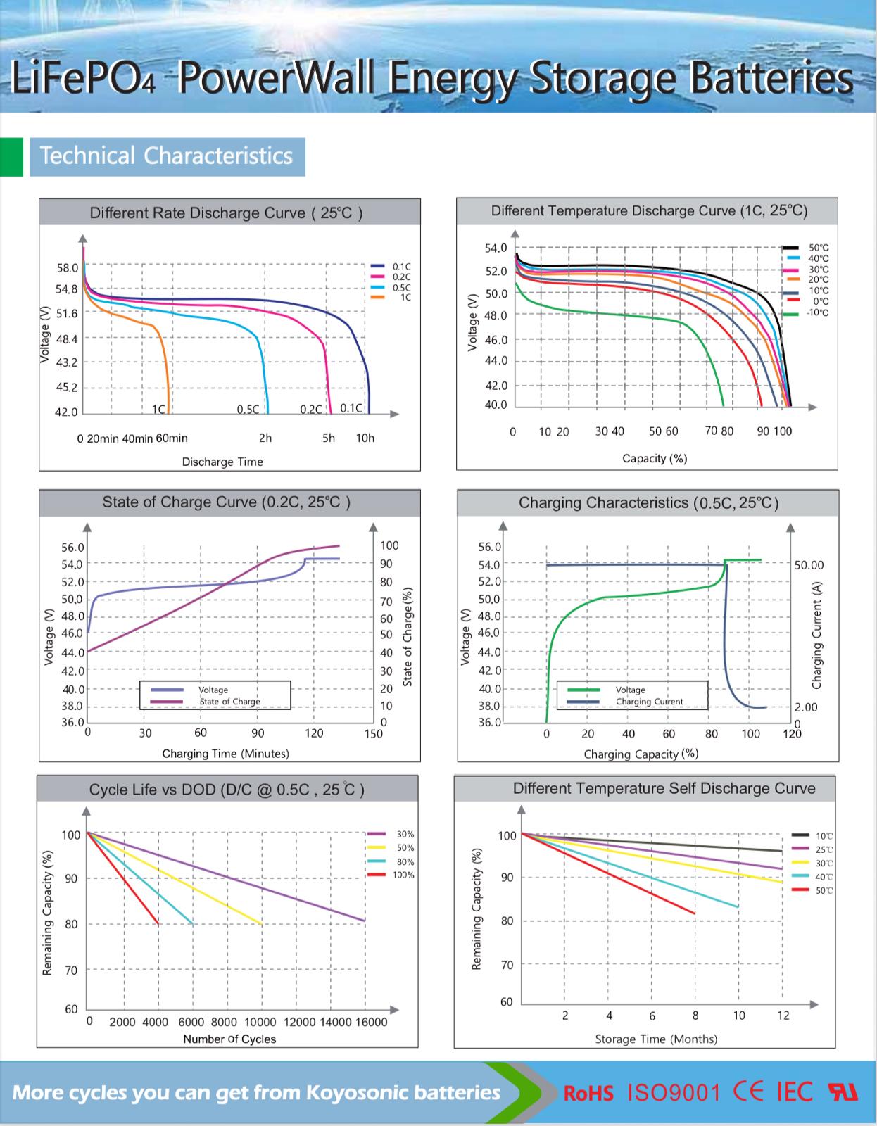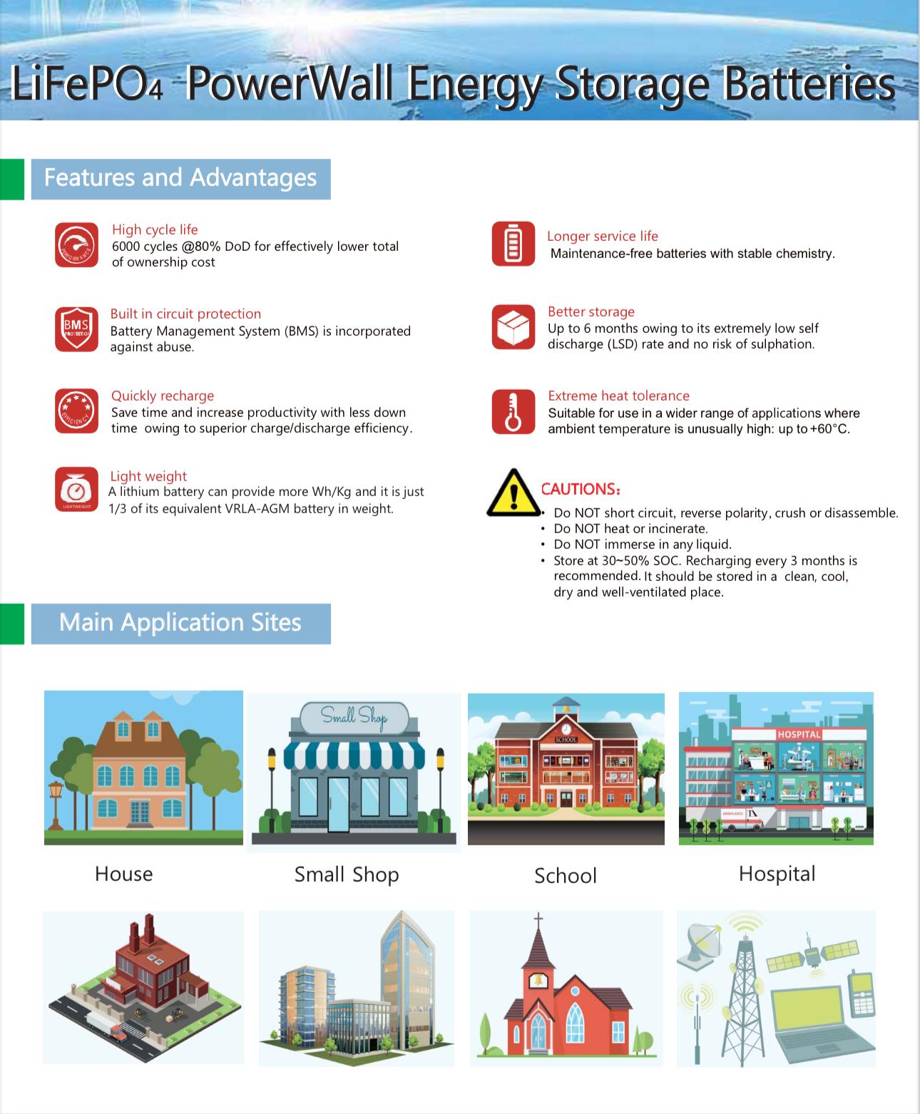 | Operation Temperature | 0~50ºC(charge); -20~60ºC(discharge) | |
